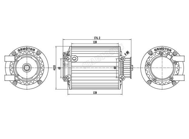Электродвигатель (электромотор, мотор, двигатель, бесколлекторный, вентильный, BLDC) QS90 1000W Электродвигатель надежный и создан для долгого и надменного использования. Не требует ухода за щеткой из-за ее отсутствия, так как это бесколлекторный бесщеточный двигатель. Двигатель имеет высокий КПД 90% при напряжении от 24В до 72В. Это 3-фазный синхронный двигатель с постоянными магнитами.