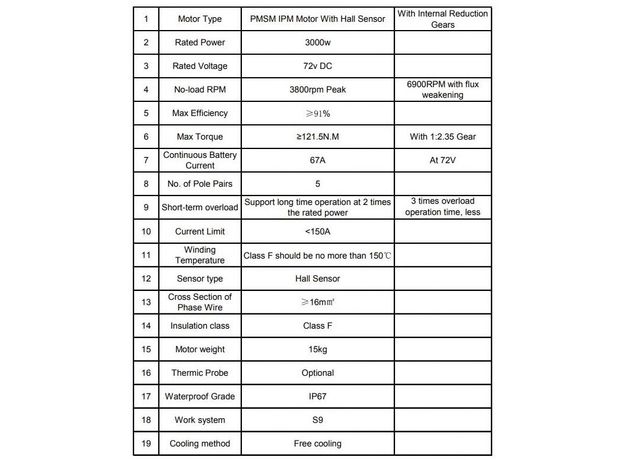 Количество оборотов в минуту при 72V: 3000