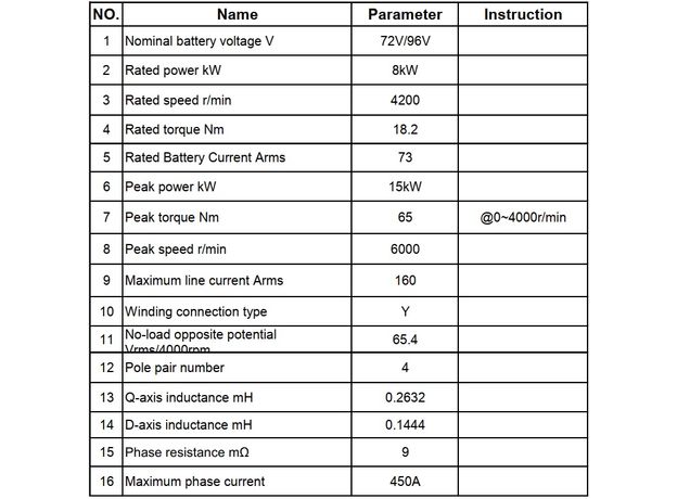 Двигатель среднего привода мощностью 8000 Вт и диаметром 228 мм, длиной 224 мм и весом 21,60 кг. Он оснащен сильным магнитом V 90H и имеет максимальную скорость до 160 км/ч и максимальный крутящий момент от 70 Нм до 112 Нм. Его класс водонепроницаемости IP67 гарантирует безопасную эксплуатацию в широком диапазоне условий.