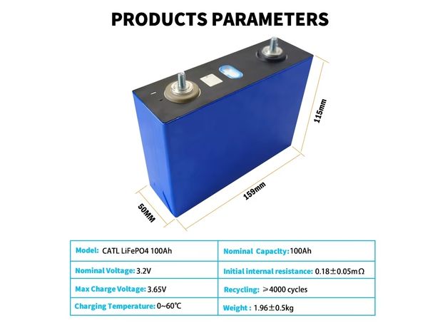 Призматический литий-железофосфатный аккумулятор LiFePO4 CATL 3.2V 100Ah Grade A – это качественный и долговечный элемент для создания аккумуляторных сборок. Подходит для систем хранения энергии (ESS), солнечных станций, электромобилей, UPS и других высокоэффективных решений.